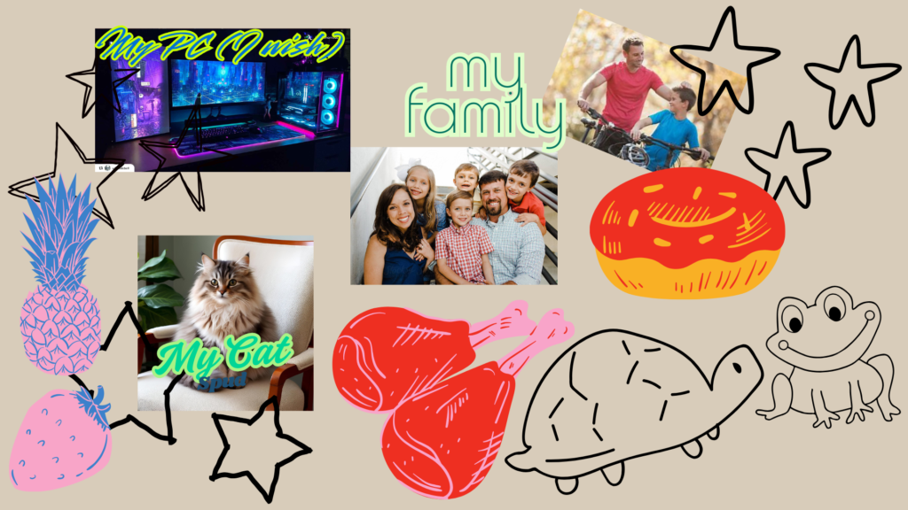 Ton objectif est de créer et de présenter une page de scrapbook à la classe. Montre tes centres d’intérêt, ta famille et d’autres choses qui te passionnent. N’ajoute pas de longs textes dans ta présentation ; garde les détails pour l’exposé oral.