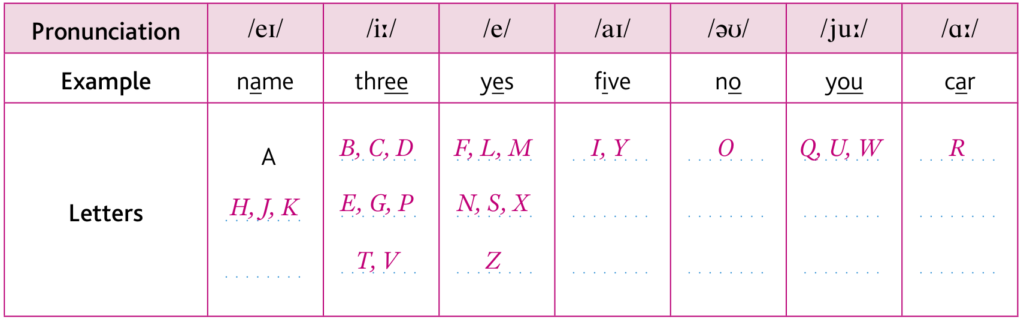 4. Spell the name for the class. Listen to the person speaking, can you guess whose name is being spelt?