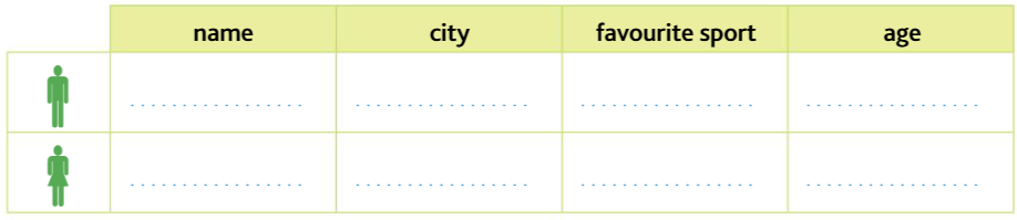 Observe le nouvel avatar qui Mary a créé pour jouer en ligne avec ses mais. Lis sa description et complète l’information.