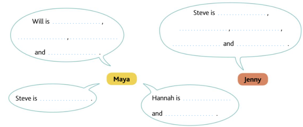 1. Who does what? Listen to the dialogue. Put a tick (✔) when the character does the activity and a cross (✖) when he or she doesn’t. Listen to Maya talking to Jenny. (Maya speaks first)
