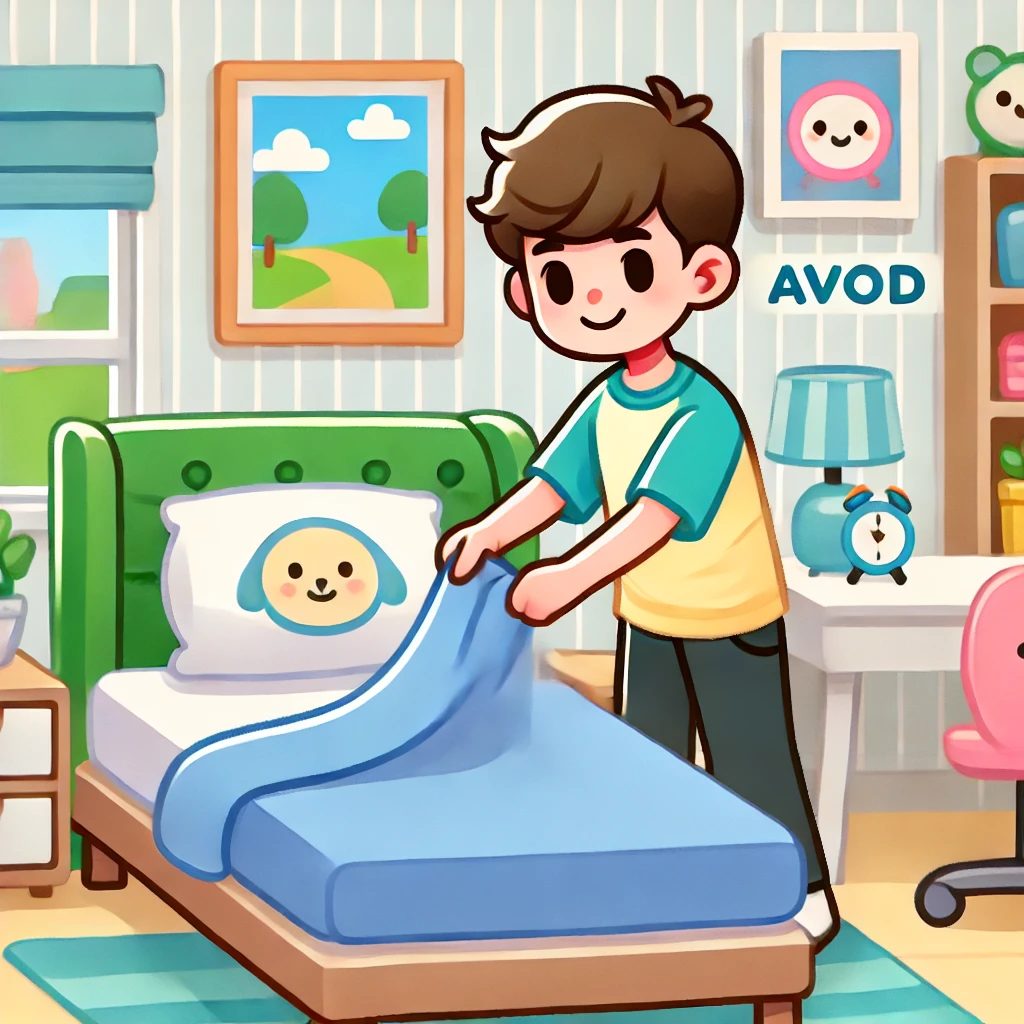 Hannah m’aide à faire mon lit et je l’aide elle aussi.