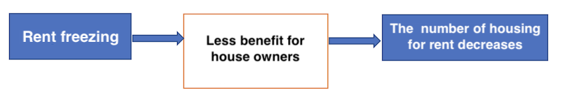 House owners may judge, that because of rent freezing, renting their dwelling would not be profitable given the maintenance costs: “Housing owners feel that the costs of maintaining their housing may exceed the benefits they expect to draw from rent« (doc The need to seek causes). As a result, some owners stop renting and therefore the number of housing for rent decreases.
